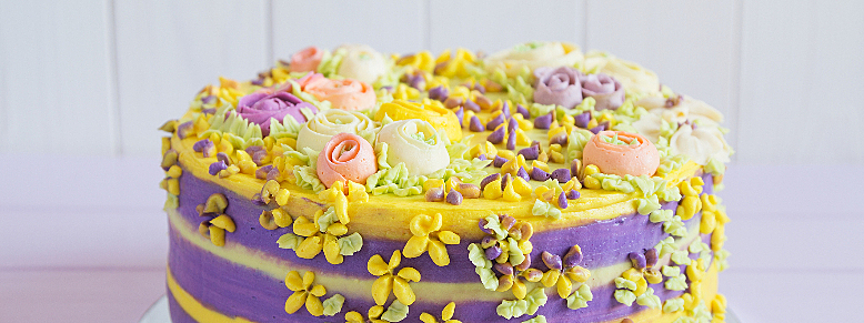 Uma das flores comestíveis mais populares é o amor-perfeito, mas encontramos também rosas, violetas, lavanda e dente-de-leão em decorações de bolos.