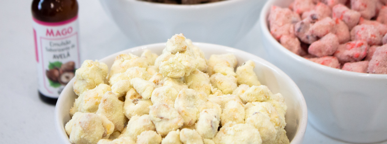 2.  Por  último,  coloque  a  Emulsão  Saborizante  de  Coco, tampe  a  panela,  aumente  para  maior  temperatura  do  seu  fogo e mexa até estourar e caramelizar os milhos.